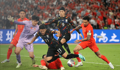 After conceding, South Korea immediately intensified their attack. With a numerical advantage, they pushed their lines forward and gradually laid siege to China. In the 73rd minute, South Korean striker Lee Dong-gook won a free kick on the right flank of the attacking third. Instead of crossing high, South Korea opted for a low-driven shot from a tight angle; Kim Jin-gyu's strike bounced in front of the goal, and although Chinese goalkeeper Li Leilei got a hand to it, the ball still trickled into the net, leveling the score at 1-1 for South Korea.