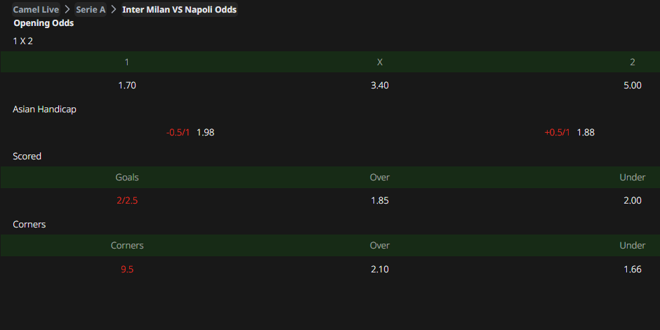 Fixture: Inter Milan vs Napoli