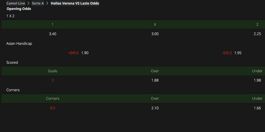 In the Asian Handicap, Lazio is given a -0.25 goal line, which represents high odds for an away side in this fixture. Verona has failed to produce decent results against teams ranked around the 10th spot this season, but playing at home, they might well hold on for a point. Conversely, Lazio has not secured many wins against lower-ranked teams in the league this campaign. A draw is highly likely in this match, though Lazio could also claim victory thanks to their superior squad strength.