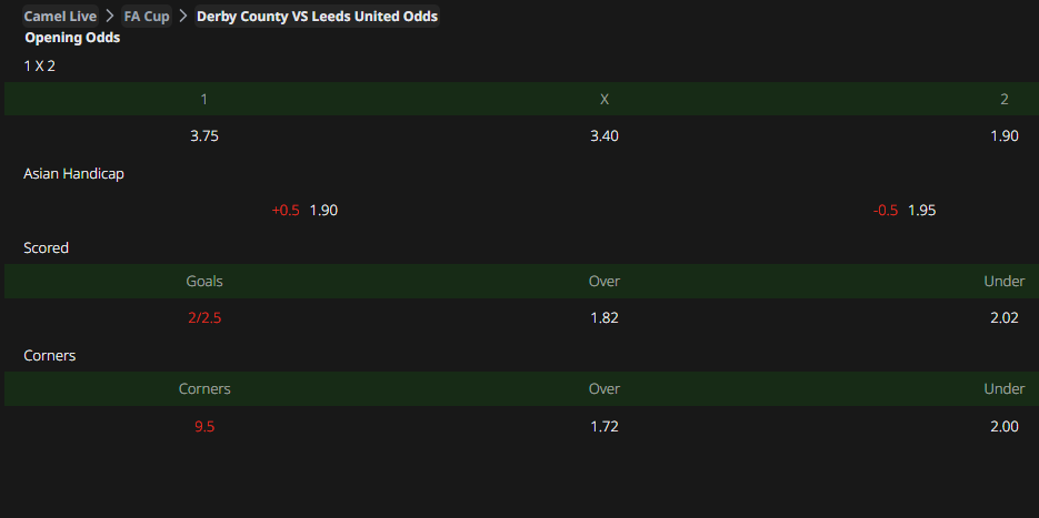 In the Asian Handicap, Leeds United is given a -0.75 goal line, which is slightly low for a Premier League side facing a Championship opponent. Although Leeds suffered a late defeat to Newcastle United in midweek, they are in excellent form at present, and the cup competition is definitely one of their targets. Leeds is highly likely to secure a narrow away win in this match, but a draw is also a possible outcome.