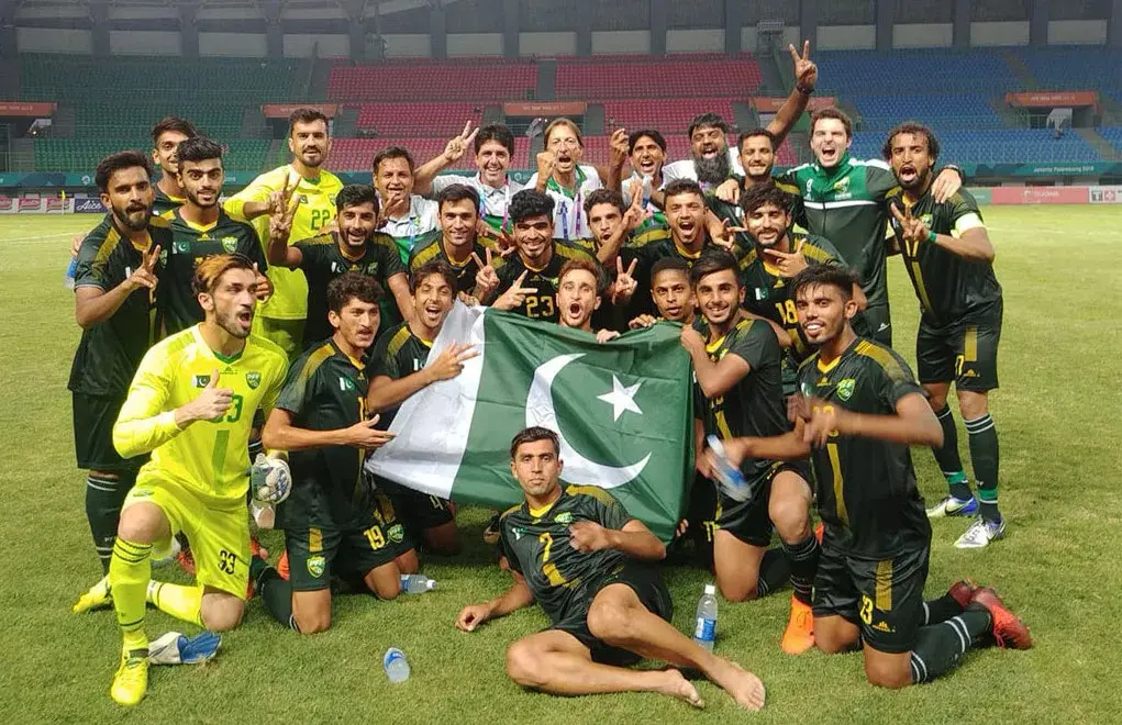 पाकिस्तान की राष्ट्रीय टीम ने 1950 में पहली बार अंतर्राष्ट्रीय मैच खेला और अब तक भी फीफा विश्व कप के फाइनल में क्वालीफाई नहीं पाया है। पाकिस्तान ने दक्षिण एशियाई क्षेत्र के बाहर किसी भी प्रमुख प्रतियोगिता के लिए कभी क्वालीफाई नहीं किया है, हालांकि क्षेत्रीय स्तर पर टीम ने 1952 का एशियन क्वाड्रैंगुलर फुटबॉल टूर्नामेंट जीता है, और 1989 और 1991 में दक्षिण एशियाई खेलों में स्वर्ण पदक भी हासिल किया है। पाकिस्तान को 1950 के दशक और 1960 के दशक की शुरुआत में फुटबॉल में अल्पकालिक उभार देखा था, लेकिन जैसे-जैसे फुटबॉल की विश्व स्तर पर लोकप्रियता बढ़ी, पाकिस्तान में इस खेल की स्थिति बिगड़ती गई। खेल की संगठनात्मक कमी और प्रशासन की फुटबॉल प्रति कम ध्यान के कारण शुरुआती वर्षों में हासिल किया गया मानक बनाए रखना संभव नहीं हो पाया। दक्षिण एशिया में क्रिकेट के भारी प्रभाव के कारण भी पाकिस्तान में फुटबॉल को लोकप्रियता हासिल करने में कठिनाई हुई है।