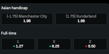 Tactically, Manchester City often breach defenses through midfield possession and wing penetration, with Erling Haaland and Phil Foden's finishing prowess being key to success. While Sunderland can occasionally threaten on the counter-attack, they are likely to struggle to sustain resistance throughout the match against City's high-intensity pressing, strong rotation depth, and amid the physical exertion of a packed schedule over the past two weeks. The Asian Handicap of Manchester City -1.75 with high odds reflects strong confidence in the hosts. Based on the above analysis, Manchester City are favored to win at home.